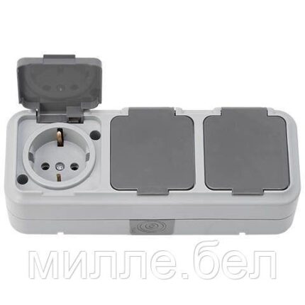 Розетка 3-ая (открытая, с/з, брызг. защ.) серая, Пралеска Аква, Bylectrica (IP54 пылебрызгозащищенные)