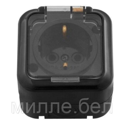 Розетка 1-ая (открытая, с/з, брызг. защ.) черная, Пралеска Аква, Bylectrica (IP54 пылебрызгозащищенные)