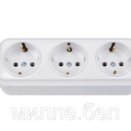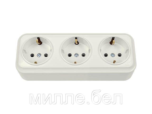 Розетка 3-ая (открытая, с/з) белая, Вариант, Bylectrica