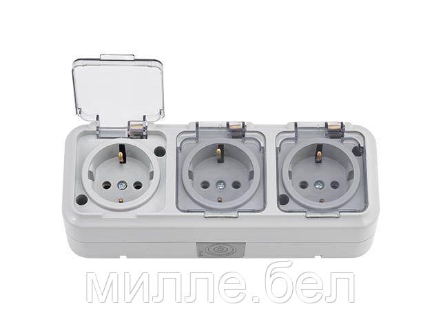 Розетка 3-ая (открытая, с/з, брызг. защ.) серая, Пралеска Аква, Bylectrica (IP54 пылебрызгозащищенные,