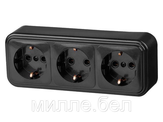 Розетка 3-ая (открытая, с/з) черная, Стандарт, Юпитер (RA 16-365 Ч) (ЮПИТЕР)