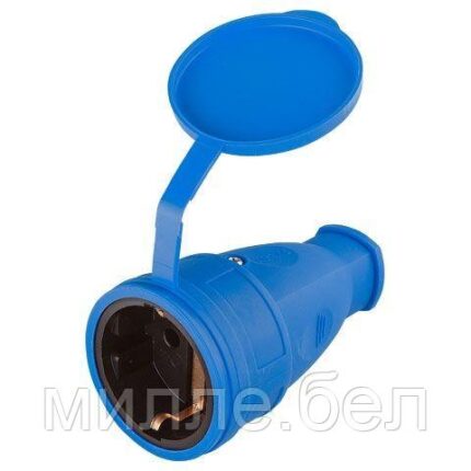Розетка 1-ая переносная (с/з, 16А,с 250В, брызг. защ.) каучук, синяя Юпитер (РА16-005) (ЮПИТЕР)