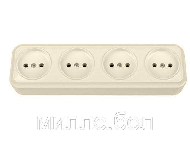 Розетка 4-ая (открытая, б/з) бежевая, Вариант, BYLECTRICA