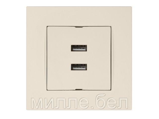 Розетка компьютерная 2хUSB (скрытая, горизонт.) кремовая, RITA, MUTLUSAN (2xUSB charge, 5V-1.0A)