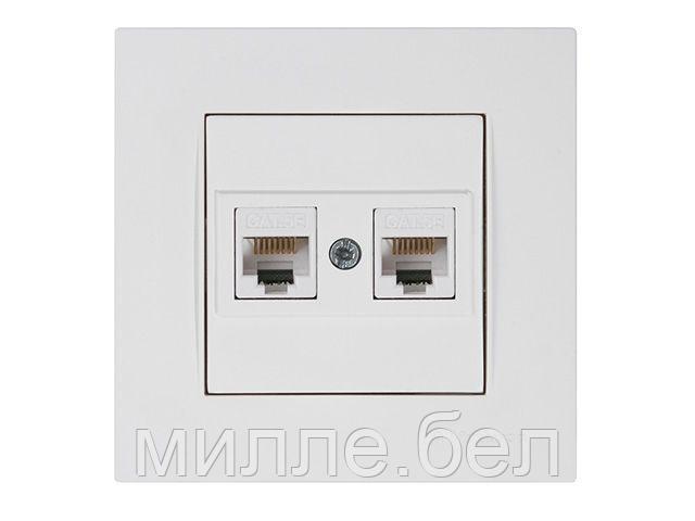 Розетка компьютерная 2xRJ45 (Cat5e, скрытая) белая, RITA, MUTLUSAN