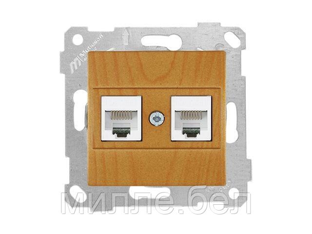 Розетка компьютерная 2xRJ45 (Cat5e, скрытая, без рамки) дуб, RITA, MUTLUSAN