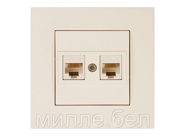 Розетка компьютерная 2xRJ45 (Cat5e, скрытая) кремовая, RITA, MUTLUSAN
