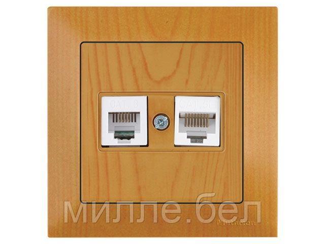 Розетка телефонная + компьютерная (RJ12+Cat5e, скрытая) дуб, DARIA, MUTLUSAN (Cat-3 (RJ 12) 4-pin + (RJ 45)