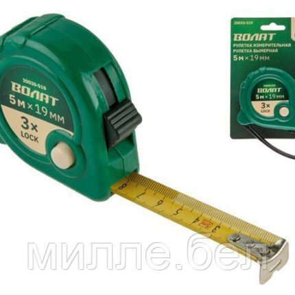 Рулетка 5м/19мм пласт. копр. ВОЛАТ (3 мех. фиксации, ABS)