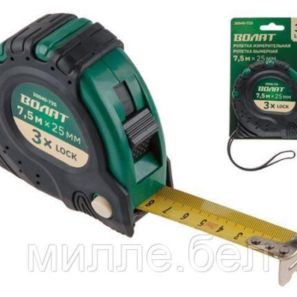 Рулетка 7,5м/25мм обрезин. корп. ВОЛАТ (3 мех. фиксации, ABS+TPR)