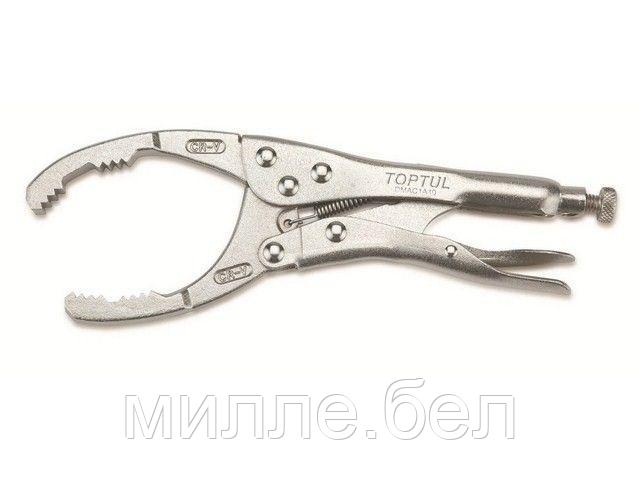 Съемник масляных фильтров зажимной TOPTUL изготовлен из высококачественной стали и имеет регулируемые обжимные щипцы. Может применяться для установки, снятия масляных фильтров любого размера. Рекомендуется для профессионального использования.Рассчитан на фильтры диаметром 53 — 118 мм.