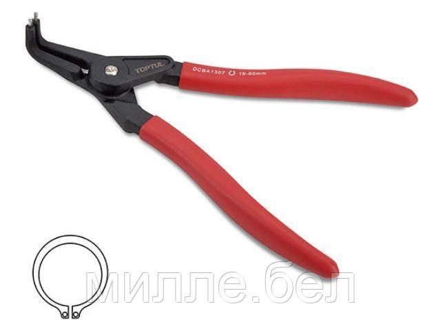 Съемник стопорных колец 180 мм 90° наружный TOPTUL (DCBA1307) — сверхмощная модель для непрерывной и интенсивной работы. Жесткие и прецизионные наконечники из шарикоподшипниковой стали. Корпус изготовлен из кованой, закаленной инструментальной стали. Тонкая головка плоскогубцев для легкого доступа к заготовкам. Большие легко устанавливаемые контактные наконечники предотвращают деформацию стопорных колец. Внутреннее невидимое пружинное открывание. Нескользкие, удобные пластиковые ручки. Подходит для стопорных колец 19-60 мм.
