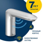 Смеситель производится из латуни — надежного, долговечного материала. Окошко инфракрасного сенсора водонепроницаемое, антивандальное. Мы используем технологию энергосбережения, которая позволяет увеличить срок службы элементов питания. В качестве элементов питания могут использоваться батареи стандартного типа АА (или стандартные аккумуляторы АА). Защита от протечек и капель. Терморегулятор устанавливается с блоком управления смесителя под раковиной.