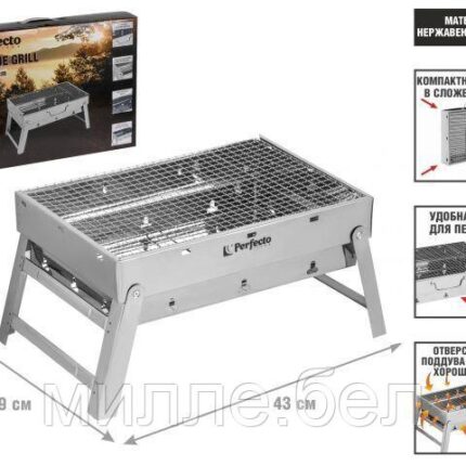 Мангал-барбекю складной с решеткой, 43х29х23 см, нержавеющая сталь, PERFECTO LINEA