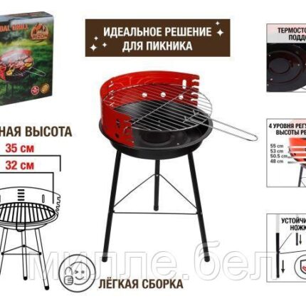 Размер: 35х56 см Регулировка высоты: 4850.55356 см Диаметр решетки: 30.5 см Материал: сталь Назначение: для приготовления пищи Гриль угольный отличается
