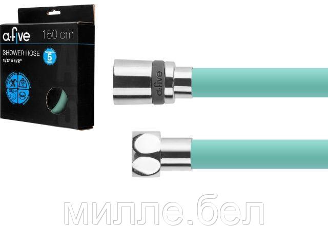 Шланг душевой, Si, 1/2″ г-г 150 см, мятный зелёный, a-five (Гайка латунь (anti-twist), 25 бар)