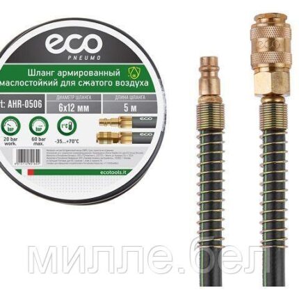 Шланг армированный маслостойкий ф 6/12 мм с быстросъемн. соед. ECO (длина 5 м) (толщ.стенки: 3 мм)