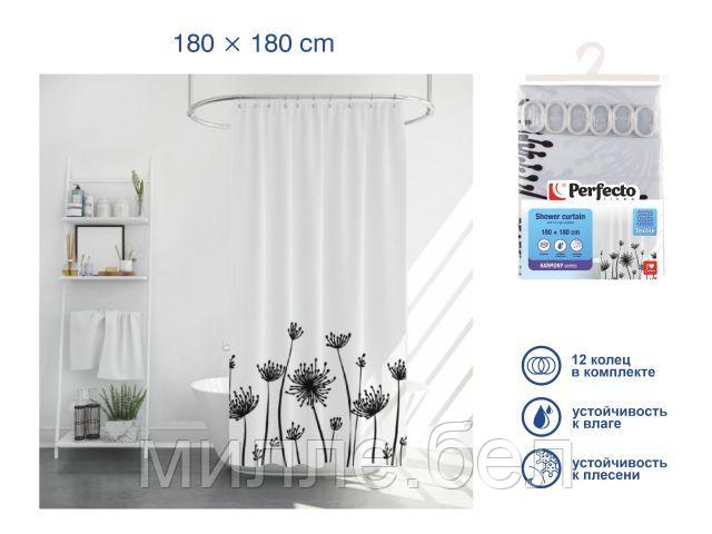 Шторка для ванной (12 колец в комплекте), 180×180 см, Harmony, цветочные тени, PERFECTO LINEA (Материал: