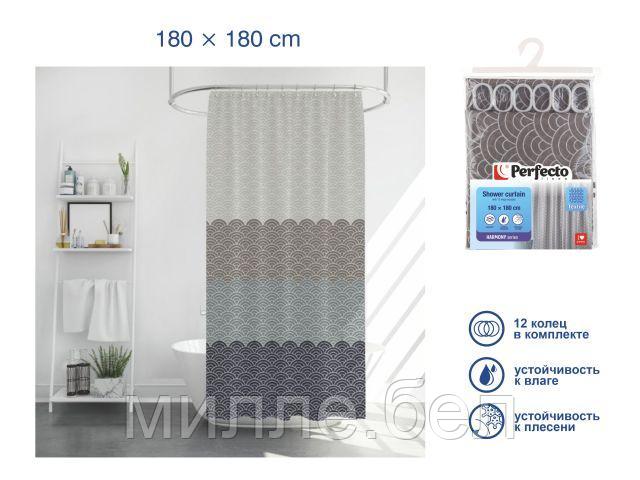 Шторка для ванной (12 колец в комплекте), 180×180 см, Harmony, волны, PERFECTO LINEA (Материал: полиэстер
