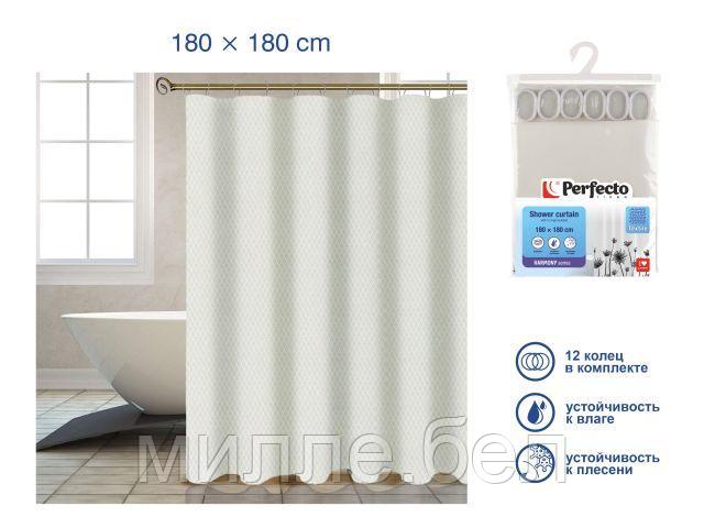 Шторка для ванной (12 колец в комплекте), 180×180 см, Harmony, жемчужно-белый, PERFECTO LINEA (Материал: