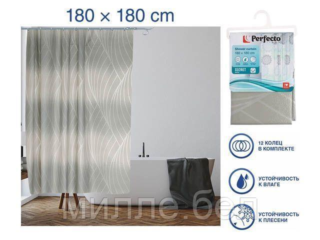 Шторка для ванной (12 колец в комплекте), 180×180 см, Secret, жемчужная, PERFECTO LINEA (Материал: ПЭВА)