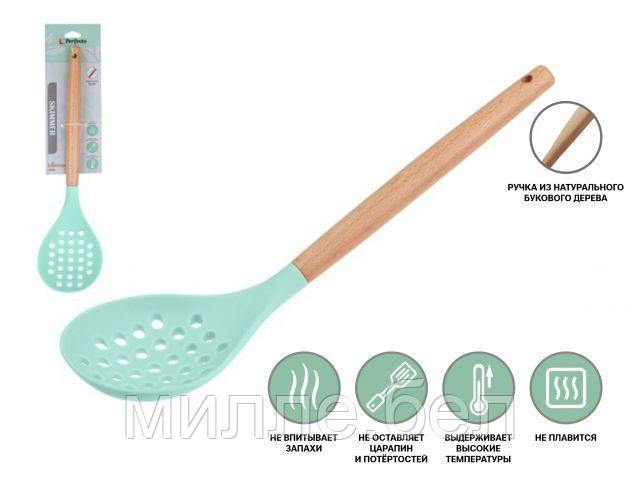 Главная Товары для дома Кухонная утварь и инвентарь Лопатки кухонные Шумовка, EcoVillage, бирюзовая, PERFECTO LINEA