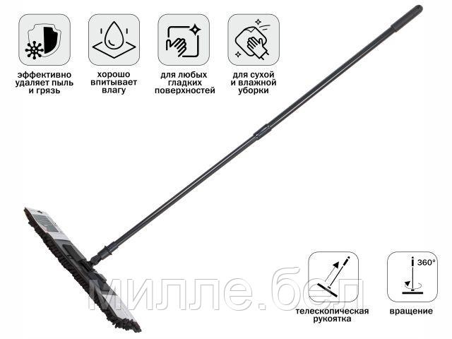 Швабра для пола с насадкой из шенилла, черная, PERFECTO LINEA (Телескопическая рукоятка 70-120 см)