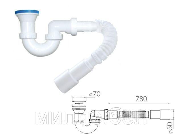 Сифон для душевого поддона U-образный, h=130 мм, выпуск 70 мм
