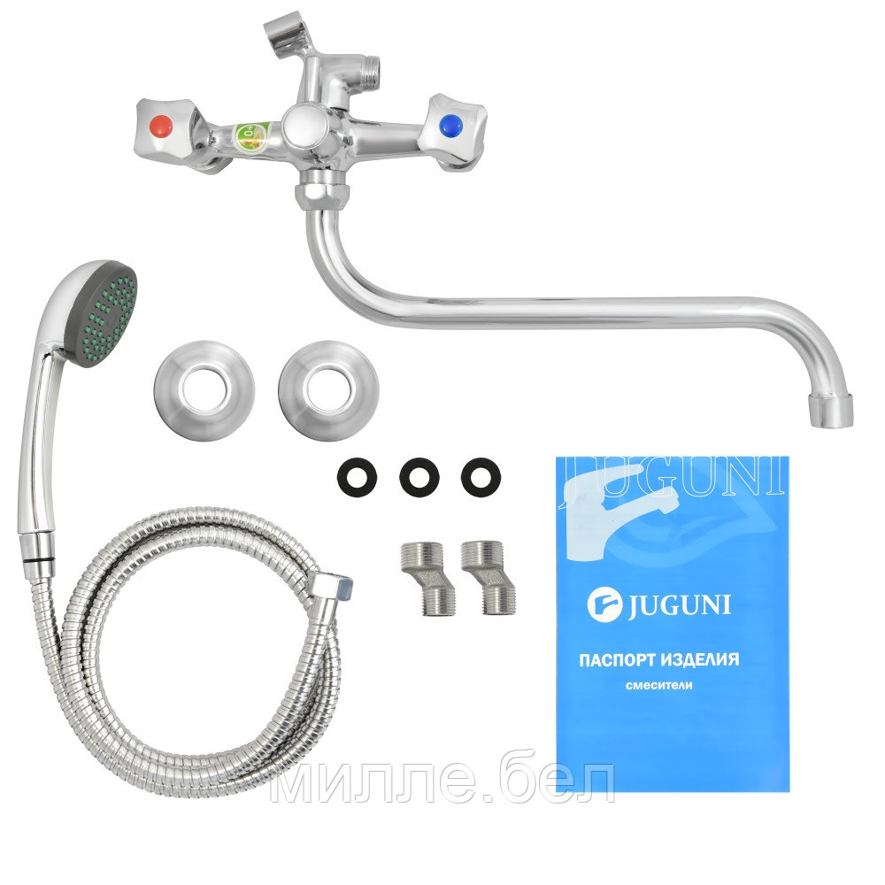 Смеситель Juguni JGN0130 ванно-душевой двухвентильный с душем и S-изливом 0402.642