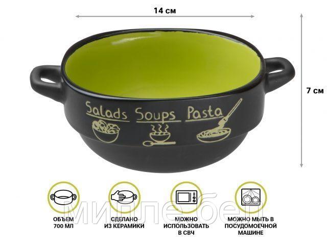 Супница керамическая, 140 мм, круглая, серия Харчо, черно-зеленая, PERFECTO LINEA (700 мл)