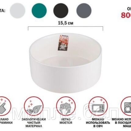Диаметр: 15.5 см Объем: 800 мл Материал: керамика Назначение: для пищевых продуктов и сервировки стола. Экологически чистый материал: Керамика —