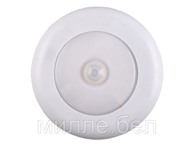 Светодиодный фонарь-светильник с датчиком движения и освещенности Хорошая автономность работы на батарейках, отсутствие необходимости прокладки проводов, многообразие способов фиксации позволяют использовать светильник во многих местах, где необходима подсветка, но нет стационарного освещения: в шкафах, в кладовках, в гардеробных, на кухне, в гаражах и т.п. Компактность, легкость, экономичность позволяют использовать универсальный светильник в качестве фонаря: дома, на даче, в палатке, в автомобиле и т.п. При появлении движущегося объекта в зоне «видимости» датчика движения происходит включение фонаря. Вторым обязательным условиям включения является недостаточный уровень освещенности. Дистанция срабатывания до 3 метров, диапазон обнаружения 120 градусов, выключение через 30 секунд Цветовая температура 6000 К В комплект поставки фонаря лент-липучка, которая позволяет закреплять фонарь на гладких поверхностях.