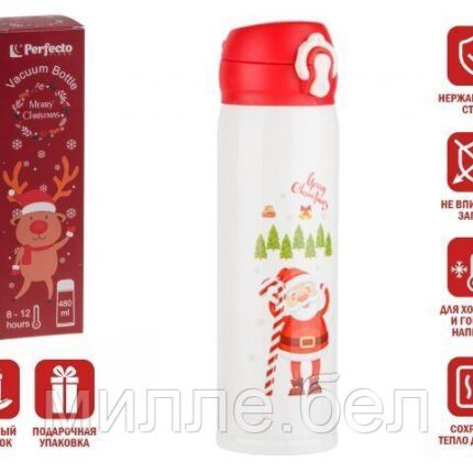 Термос, 480 мл, нержавеющая сталь, MERRY CHRISTMAS, белый, PERFECTO LINEA