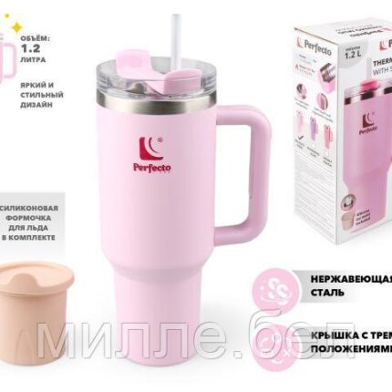 Термокружка c трубочкой, 1180 мл, нержавеющая сталь, delicate rose, серия Styley, PERFECTO LINEA