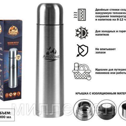 — Двойные стенки, создающие вакуумную теплоизоляцию, сохраняют температуру напитков в течение долгого времени