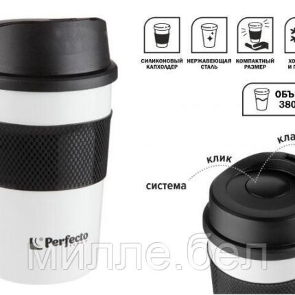 Термокружка для кофе, 380 мл, нержавеющая сталь,white, PERFECTO LINEA (в индивидуальной упаковке)