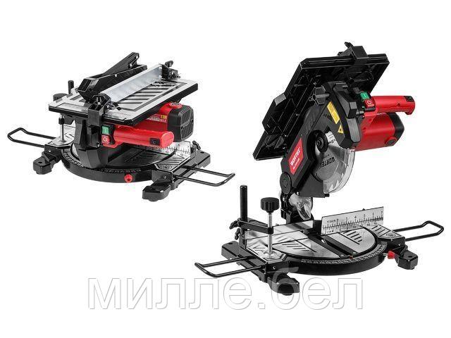 2 в 1: торцовочная пила и распиловочный станок позволяет совершать точные торцевые пропилы и осуществлять продольную распиловку заготовок.