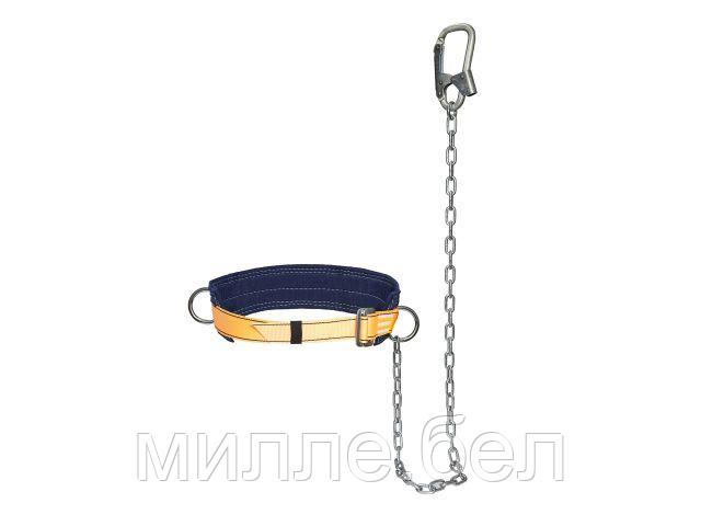 Состоит из ремня с пряжкой, кушака и двух D-колец для присоединения стропа. Удерживающая система оснащена стропом из стальной цепи (строп Г) с монтажным карабином.