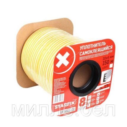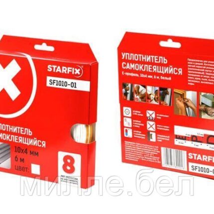 Уплотнитель «E» белый 10х4мм 150м (сдвоенный профиль 2х75м) STARFIX
