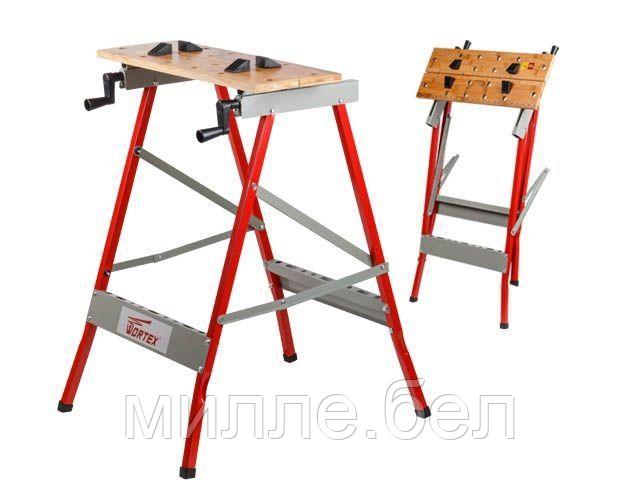 Многофункциональное устройство для облегчения обработки различных заготовок. В верстаке так же имеется функция тисков. Верстак легко хранить и перевозить, благодаря складной конструкции. Предусмотрены отверстия в столешнице для надежной фиксации заготовок. Возможно использовать для закрепления инструмента. Имеет надежную металлическую конструкцию выдерживающую равномерную нагрузку в 70кг !