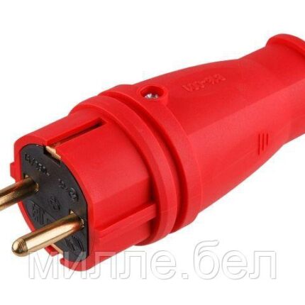 Вилка (с/з, 16А, 250В) каучук, красная Юпитер (В16-001) (ЮПИТЕР)