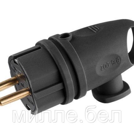 Вилка угловая с ушком (с/з, 16А, 250В) каучук, черная Юпитер (В16-002) (ЮПИТЕР)