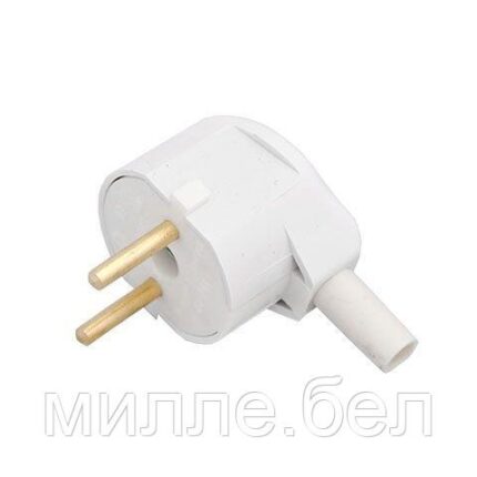 Вилка угловая (б/з, 6А, 250В) белая, Bylectrica