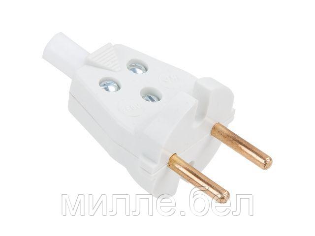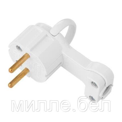 Вилка угловая с откидывающимся ушком (б/з, 6А, 250В) белая, Bylectrica