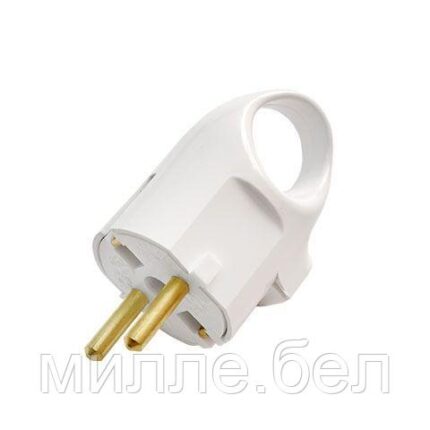 Вилка угловая с откидывающимся ушком (с/з, 16А, 250В) белая, Bylectrica