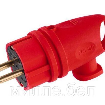 Вилка угловая с ушком (с/з, 16А, 250В) каучук, красная Юпитер (В16-002) (ЮПИТЕР)