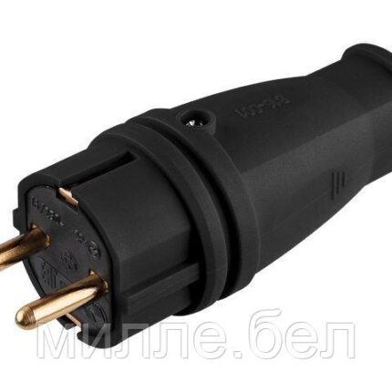 Вилка (с/з, 16А, 250В) каучук, черная Юпитер (В16-001) (ЮПИТЕР)