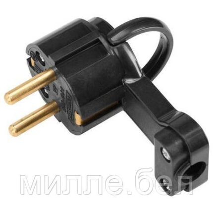 Вилка угловая с откидывающимся ушком (с/з, 16А, 250В) черная, Bylectrica