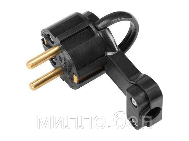 Вилка угловая с откидывающимся ушком (с/з, 16А, 250В) черная, Bylectrica