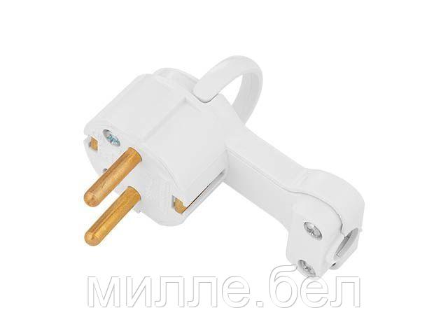 Вилка угловая с откидывающимся ушком (с/з, 16А, 250В) белая, Bylectrica
